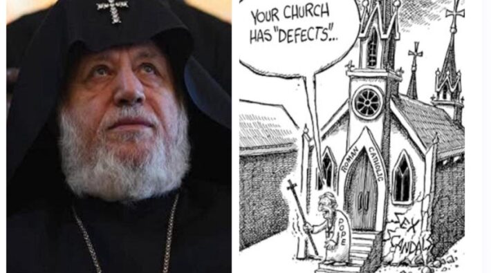 Եկեղեցու քաղաքականացումը վաղուց հայտնի երևույթ է, սակայն այն ակնհայտորեն դրսևորվել է 44-օրյա պատերազմից հետո, երբ կաթողիկոսը, նրա խոսքով, չհղեց մխիթարական ուղե